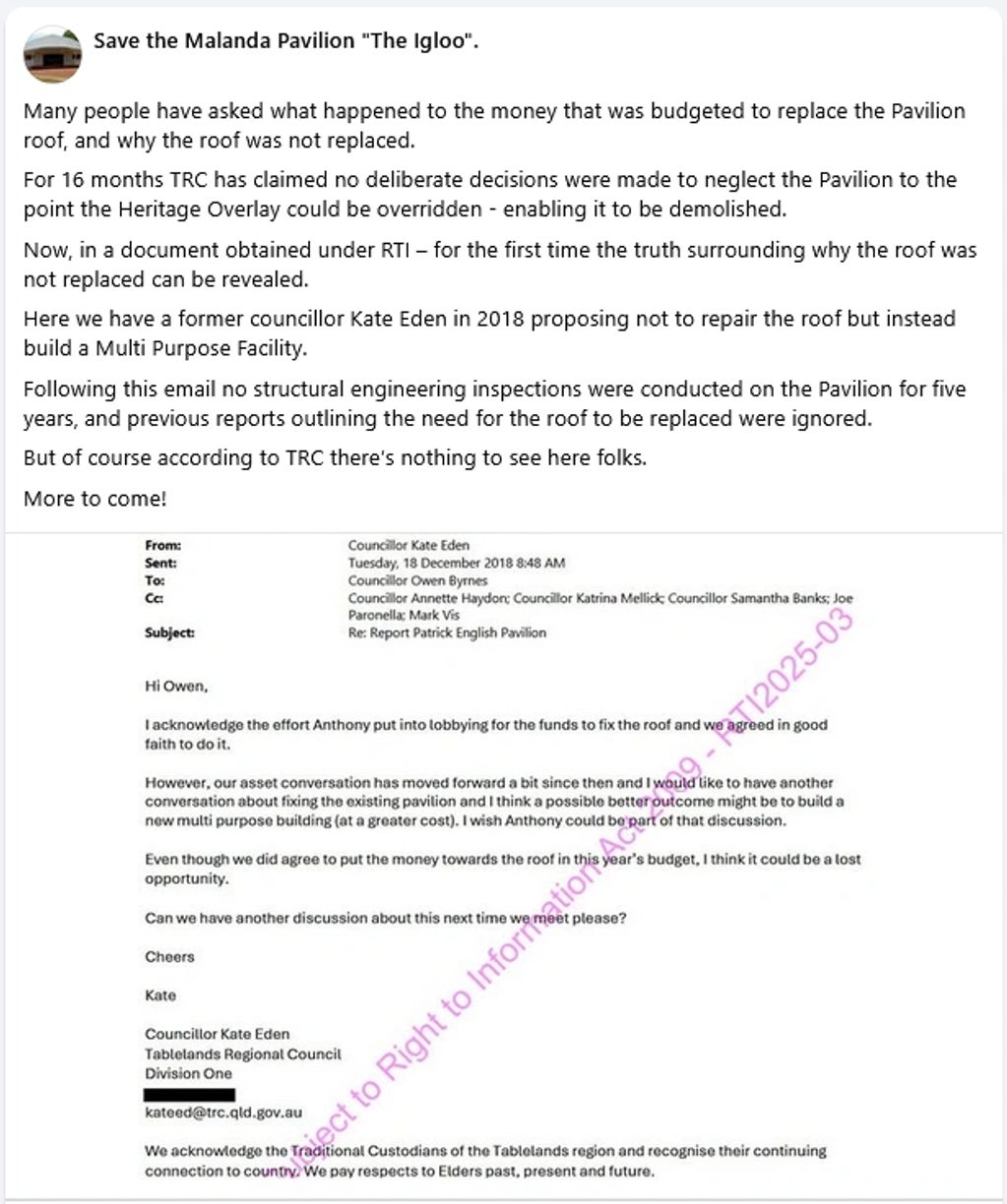 It has been discovered that council lodged a development application (12th Feb) to demolish Pavilion 25th Feb 2025